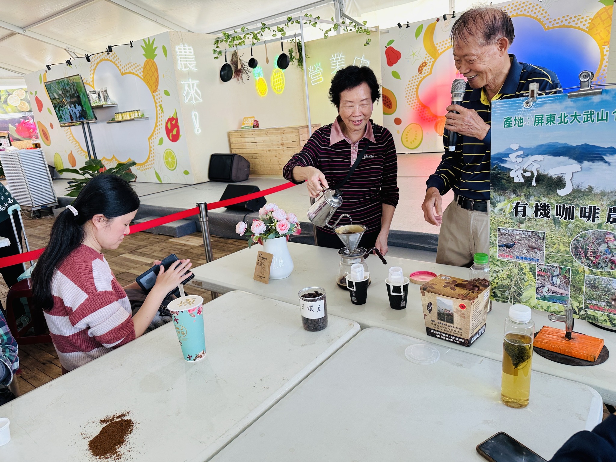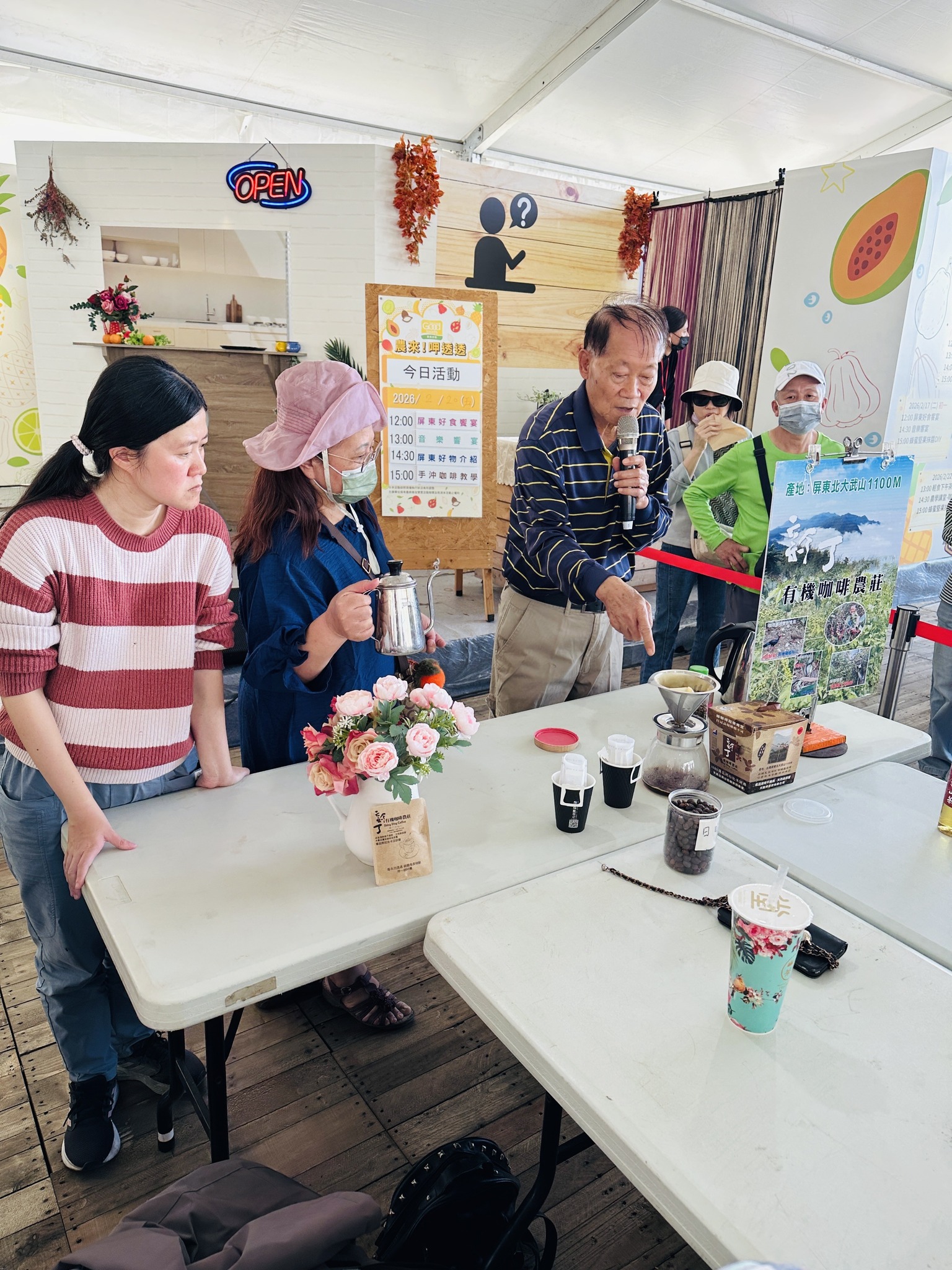 昨天2月20日初四下午15點在屏東熱帶農業博覽會的戶外區「農來呷透透區」第2次手沖咖啡教學同樣由農場主人親自上陣,教導大家如何沖泡一杯香醇的好咖啡也讓學員們現場親自體驗手沖咖啡的樂趣,廣受好評,謝謝現場熱情參與的學員們都很認真聽課